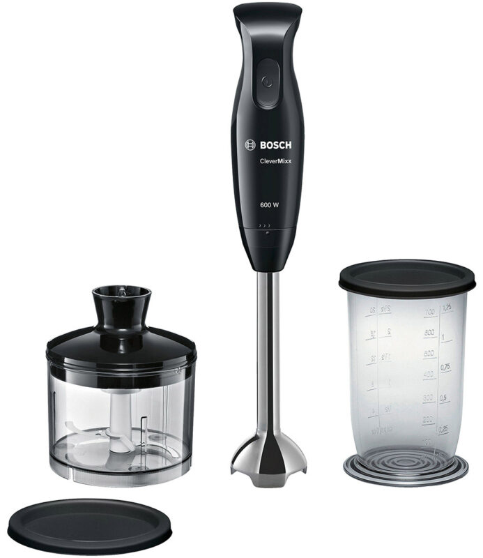 Прилади серії CleverMixx: універсальні помічники на кухні Потужний мотор 600 Вт: висока потужність та широка комплектація аксесуарів для неперевершених результатів. Технологія QuattroBlade: інноваційний ніж з 4 гострими лезами для отримання ідеальних результатів. Універсальний подрібнювач у комплекті. Мірна чаша з кришкою: для легкого перемішування невеликої кількості продуктів. Зйомна ніжка блендера: легке від'єднання, просто прокрутіть привід. Комфорт Ергономічний дизайн ручки блендера Купол ніжки з захистом від розбризкування Блендерна ніжка з високоякісної нержавіючої сталі Легке очищення: аксесуари придатні до миття в посудомийній машині (Блендерна ніжка із нержавіючої сталі, чаша подрібнювача та ніж із нержавіючої сталі, мірна чаша та кришки) Знімна ніжка блендера з нержавіючої сталі Зручний міні-подрібнювач з кришкою з можливістю зберігання у холодильнику об’ємом 650 мл Мірна чаша з кришкою з можливістю зберігання у холодильнику