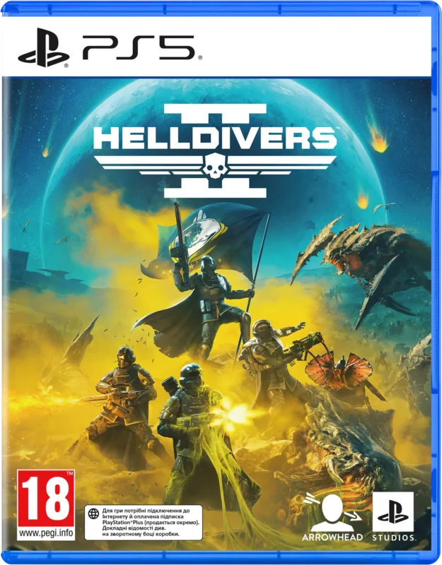 ет пробел сверху –> Диск HELLDIVERS 2 для PS5 Приєднуйтесь до Helldivers і боріться за свободу з друзями у ворожій галактиці в цьому швидкому, шаленому шутері від третьої особи. ПОРИНЬТЕ У БОРОТЬБУ ЗА СВОБОДУ Нам потрібні відважні громадяни, щоб мандрувати галактикою, звільняючи непередбачувані, ворожі світи — і поширювати наше послання миру, свободи та керованої демократії — у швидких, шалених і лютих місіях. СТАНЬ ЛЕГЕНДОЮ Як частина елітних сил Суперземлі, ти маєш у своєму розпорядженні повну військову міць. Підвищуйтеся в рядах, виконуючи важливі місії, змінюючи хід битви та захищаючи фронт. СКООРДИНОВАНА ТАКТИЧНА ВІЙНА Відчуйте всю лють бою за допомогою бездротового контролера DualSense™, призначеного Super Earth, і консолі PlayStation®5: Адаптивні тригери: відкрийте для себе різні рівні віддачі, скорострільність і вагу кожної зброї, яку ви берете в бій. Тактильний зворотний зв’язок: відчуйте, як кожен інопланетний світ оживає навколо вас через захоплюючі ефекти навколишнього середовища, обладнання та погоди. Вбудований мікрофон: обмінюйтеся тактикою та інформацією зі своїми товаришами в хаосі бою. PS5® Tempest 3D AudioTech: виявляйте ворогів, що наближаються, битви поблизу та віддалені крики про допомогу з будь-якого боку.* Швидше завантаження: стрибайте прямо в захоплюючу дію з блискавичним часом завантаження. ГАЛАКТИЧНА ВІЙНА Галактична війна вирує на кількох фронтах, кампанії точаться, виграються та програються. Наші вороги борються з нами на кожному кроці, але ми не заспокоїмося, доки кожна істота не отримає свободу! Війна постійно змінюється: кожна кампанія, операція та бій впливають на лінію фронту. Ми стоїмо разом, або ми програємо! *3D-аудіо через вбудовані динаміки телевізора або аналогові/USB стереонавушники.