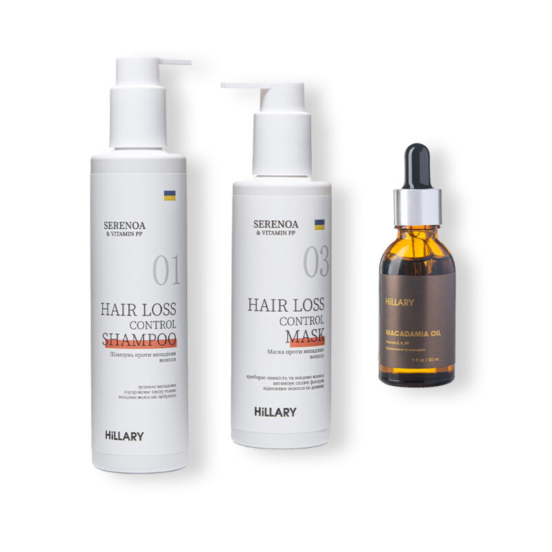 Шампунь та маска проти випадіння волосся + Органічна нерафінована олія макадамії