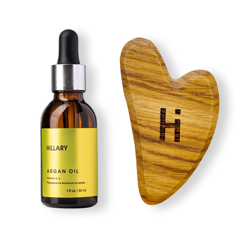 Шкребок гуаша для обличчя дерев‘яний + Органічна арганова олія