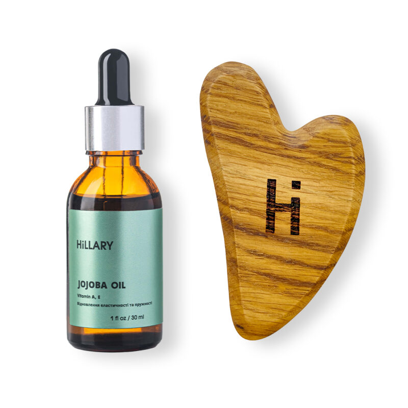 Шкребок гуаша для обличчя дерев‘яний + Органічна олія жожоба