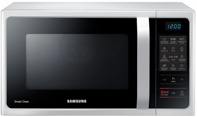 Простий спосіб приготування смачних і здорових страв Samsung Smart Oven MC28H5013AW пропонує 15 смачних і корисних для здоров'я авторецептов здорового харчування. Конвекційний режим дозволяє легко і швидко готувати соковиті і апетитні страви. Ви можете приготувати найрізноманітніші страви, починаючи від капусти-броколі до коричневого рису, від курячих грудок до філе форелі. Домашній йогурт в будь-який час Оцініть можливість легко і швидко приготувати домашнє тісто і йогурт з допомогою новітньої технології ферментації. Для цього достатньо лише встановити потрібну температуру, і Ваша сім'я буде завжди забезпечена смачними і свіжими сніданками, обідами і вечерями. Використовуйте кожен сантиметр робочого обсягу печі Оцініть зручність процесу приготування страв за допомогою Smart Oven MC28H5013AW. Розроблена для сімей з дефіцитом вільного часу, ця піч оснащена функцією регулювання поворотного піддону, завдяки якій Ви можете ефективно використовувати кожен сантиметр робочої камери і готувати страви у великих прямокутних деках. У цій новій печі Ви можете легко розігрівати страви у великих каструлях, завдяки чому у Вас залишиться більше часу на спілкування зі своїми близькими за загальним столом. Ніяких неприємних запахів В Samsung MC28H5013AW Smart Oven харчові запахи не затримуються. Просто виберіть режим видалення запахів (деодорізаціі), і в робочій камері не залишиться ніяких запахів. Ця функція швидко видалить будь-які неприємні запахи. Біокерамічні покриття внутрішніх стінок робочої камери Забудьте про подряпинах та проблеми очищення стінок камери печі. Біокерамічні покриття, яким покриті внутрішні стінки робочої камери печі Samsung Smart Oven MC28H5013AW, відрізняється гладкою поверхнею, яка легко і швидко очищається від слідів пригорілого жиру. У порівнянні з камерами з нержавіючої сталі і епоксидних матеріалів, біокерамічні камера володіє антибактеріальними властивостями і стійкістю до появи подряпин. Оцініть простоту приготування смачних національних страв Піч Samsung MC28H5013AW Smart Oven оснащена встановленими рецептами найрізноманітніших страв традиційного російського меню. Тепер для приготування будь-якої страви досить просто вибрати необхідні параметри режиму за допомогою інтуїтивного меню. Економія енергії в режимі очікування Режим економії ECO Mode нової мікрохвильової печі Samsung забезпечує мінімальне енергоспоживання в режимі очікування, що істотно зменшить Ваші рахунки за електроенергію.