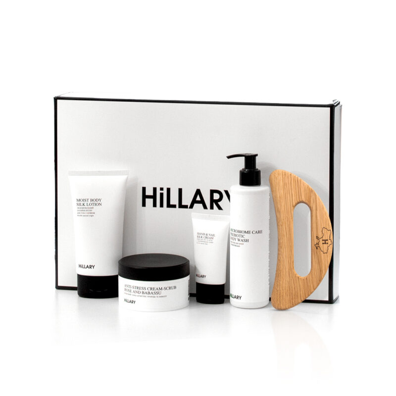 До набору входять: Крем для сухої та чутливої шкіри Hillary Corneotherapy Intense Сare Avocado & Squalane, 50 мл; Тонік для сухої та чутливої шкіри Hillary Aloe Toner, 200 мл; Очищуюча пінка для сухої та чутливої шкіри Hillary Cleansing Foam Squalane + Avocado oil, 150 мл; Гіалуронова сироватка Hillary Smart Hyaluronic, 30 мл; Відновлююча сироватка навколо очей Hillary Anti-fatigue, 10 мл; Убтан для глибокого зволоження та скрабування Hillary BAMBUSA UBTAN, 100 г. Подарунковий бокс Perfect 6 для щоденного догляду сухої та чутливої шкіри – ідеальний спосіб зробити приємне собі коханій або близькій подрузі, сестрі, чи мамі. Очищувальні засоби у складі набору делікатно, глибоко і м’яко очистять шкіру, позбавляючи від макіяжу, надлишків себуму та інших забруднень. А зволожувальні та живильні продукти забезпечать тривале зволоження, покращать еластичність і пружність шкіри, подарують їй сяйво і рівний тон.