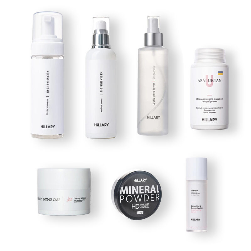 Спеціально для власниць сухої, зневодненої, схильної до лущення шкіри ми підготували сезонний набір для живлення і захисту сухої шкіри Dry Skin Nutrition & Protection. Основою складу засобу є природні компоненти, які забезпечують максимально м’яку, але водночас ефективну дію. До набору входять: Тонік для сухої та чутливої шкіри Hillary Aloe Toner, 200 мл; Очищуюча пінка для сухої та чутливої шкіри Hillary Cleansing Foam Squalane + Avocado oil, 150 мл; Регенеруюча сироватка з біо-ретинолом та скваланом Hillary Bakuchiol & Olive Squalane Skin Renewal Serum, 30 мл; Гіалуронова зволожуюча сироватка Hillary Pure Hyaluronic, 30 мл; Експрес сироватка навколо очей Hillary Express Eye Serum, 10 г; Крем для сухої та чутливої шкіри Hillary Corneotherapy Intense Сare Avocado & Squalane, 50 мл. Спосіб застосування: Невелику кількість пінки нанесіть на вологе обличчя легкими масажним рухами, ретельно промийте обличчя водою. Наступний етап – тонік. Нанесіть невелику кількість тоніку на попередньо очищену шкіру. Уникайте потрапляння в очі. Невелику кількість сироватки express нанесіть кінчиками пальців на добре очищену шкіру навколо очей. Змішайте по кілька крапель сироватки бакучіол та гіалуронову сироватку pure та нанесіть на очищену шкіру тонким шаром, дати увібратися 10-15 хвилин. За необхідності невелику кількість крему нанесіть масажними рухами на попередньо очищену шкіру обличчя, втираючи до повного всмоктування.