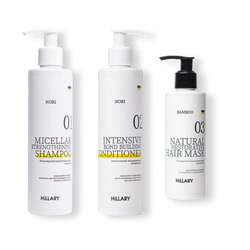 Набір, створений на основі екстракту сереноа, чебрецю, збагачений протеїнами пшениці та ніацинамідом для ефективного очищення шкіри голови та догляду за волоссям з терапевтичною дією проти випадання волосся. Комплекс інноваційних активних інгредієнтів зміцнює волосяні фолікули, продовжує рівень життєвої активності клітин волосяного фолікула, покращує якість та стійкість волосся до зовнішніх впливів, а також збільшує його об‘єм. Діє проти тимчасового, дифузного та андрогенетичного випадіння волосся. Шампунь делікатно видаляє забруднення зі шкіри голови, очищає стрижень волосся та видаляє бруд з отворів фолікулів, створюючи середовище для здорового росту волосся. Створений на основі рослинних поверхнево-активних речовин, які забезпечують розкішне спінювання, зберігають колір фарбованого волосся та не вимивають кератин після кератинового вирівнювання. Кондиціонер зміцнює, зволожує та полегшує розчісування волосся, живить і потовщує тонкі пасма, не обтяжуючи волосся. Маска для волосся BAMBOO Hair Mask прекрасно відновлює волосся від коренів до самих кінчиків, зміцнює їх структуру, надаючи їм пружність, еластичність і здоровий вигляд. Підходить для всіх типів волосся. Активні компоненти: 1. Нікотинова кислота (вона ж Ніацинамід, вітамін РР, вітамін В) впливає на судини шкіри голови, розширюючи їх, покращуючи кровообіг, налагоджуючи обмінні процеси та зміцнюючи захисний бар єр шкіри голови. 2. Екстракт сереноа продовжує тривалість життєвого циклу волосся, в результаті чого його випадіння скорочується. Оздоровлює шкіру, відновлюючи та підтримуючи нормальну мікрофлору. Сереноа блокує дію ферменту 5-альфа-редуктази, що перетворює тестостерон в дигідротестостерон (DHT). Висока кількість DHT в організмі може призвести до збільшення випадіння волосся. Сереноа зменшує кількість DHT, що потрапляє до волосяних фолікулів, тим самим зменшуючи ризик випадіння волосся. Крім того, цей екстракт містить антиоксиданти та жирні кислоти, які допомагають зміцнити волосся, покращують кровообіг у шкірі голови та забезпечують відмінний догляд за волоссям. !!! Радимо використовувати набір у комплексі з сироваткою проти випадіння волосся, особливо у випадках пов’язаних з андрогенним випадінням. Зростання нового волосся – це природний процес, який відбувається поступово протягом 3-6 місяців, тому вимагає регулярності та терпіння. Необхідно продовжувати використання, щоб посилити та зберегти відростання, інакше випадіння волосся почнеться знову. До набору входять: Шампунь проти випадіння волосся Hillary Serenoa & РР Hair Loss Control, 250 мл Кондиціонер проти випадіння волосся Hillary Serenoa & РР Hair Loss Control, 250 мл Натуральна маска для відновлення волосся Hillary BAMBOO Hair Mask, 200 мл Спосіб застосування: Нанесіть шампунь на мокре волосся і шкіру голови. Масажуйте шкіру протягом 2-3 хвилин. Змийте водою. Повторіть 2-3 рази. Для профілактики та при сезонному випаданні волосся використовуйте 2-3 рази в тиждень протягом 1-2 місяців. Для інтенсивної терапії випадання волосся використовуйте протягом 1-3 місяців. При андрогенозалежній алопеції використовуйте постійно. Нанесіть кондиціонер на вологе чисте волосся і рівномірно розподіліть по всій довжині руками або за допомогою великого гребінця. Змити водою через 1-2 хвилини. Для проведення спа-ритуалу можна залишити на волоссі до 15-20 хвилин, 