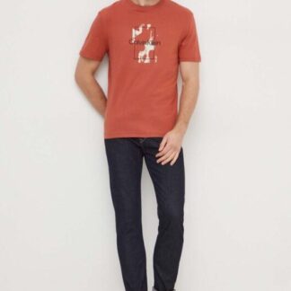 Бавовняна футболка Calvin Klein чоловічий колір помаранчевий з принтом