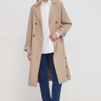 Тренч Geox жіночий колір бежевий перехідний двобортний