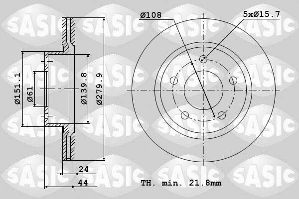 Диск гальмівний передній вентильований Sasic 6104036